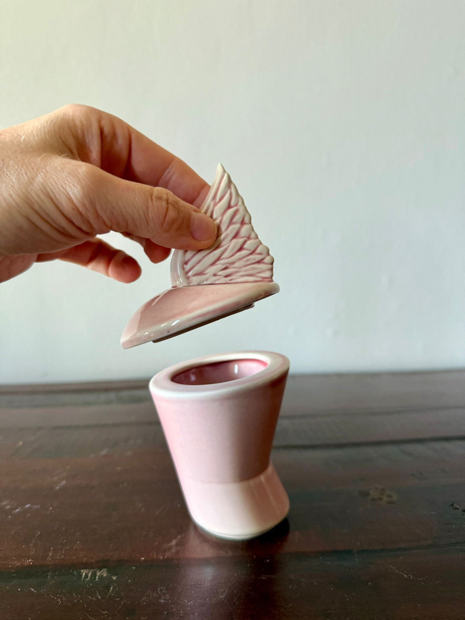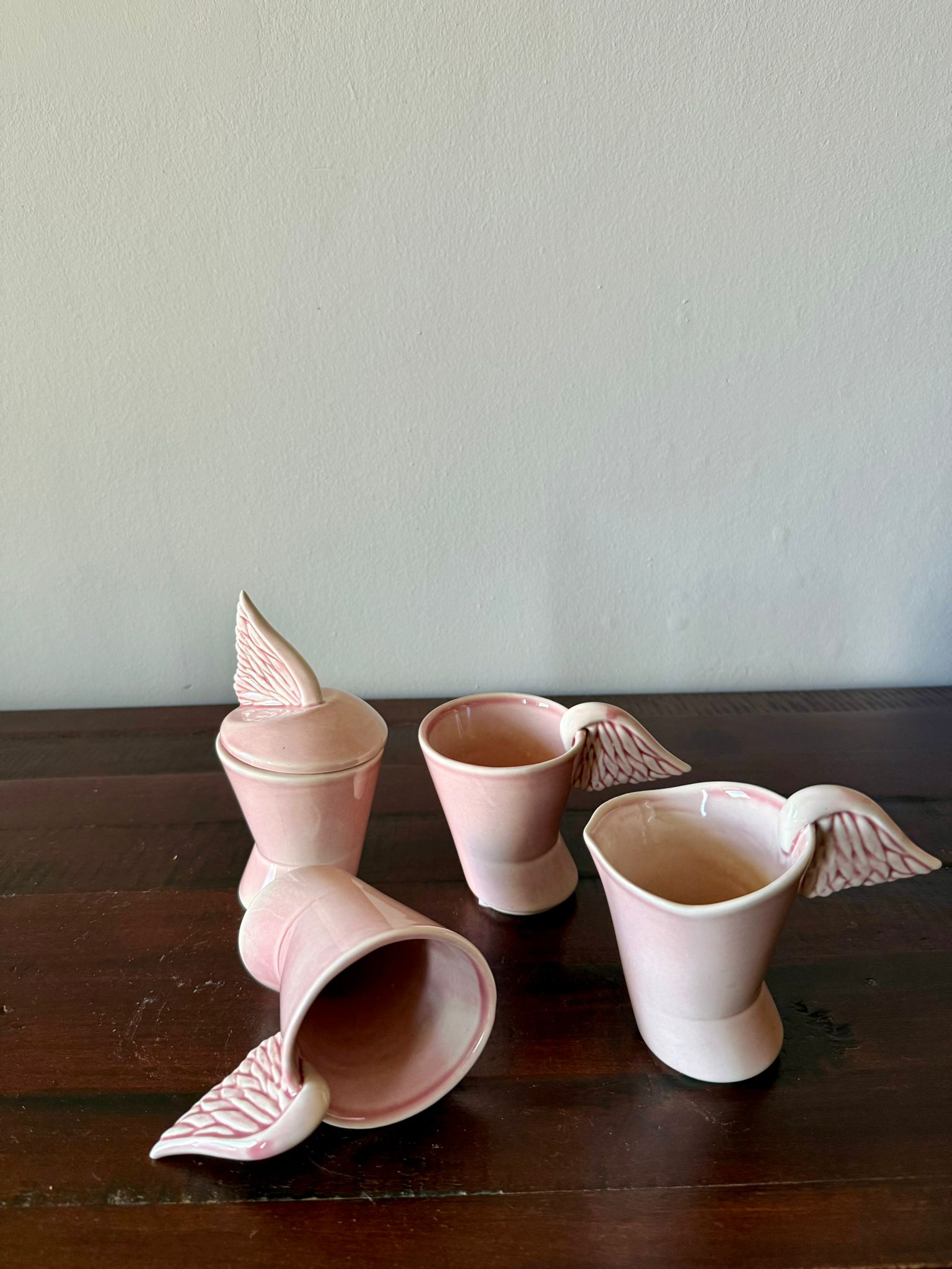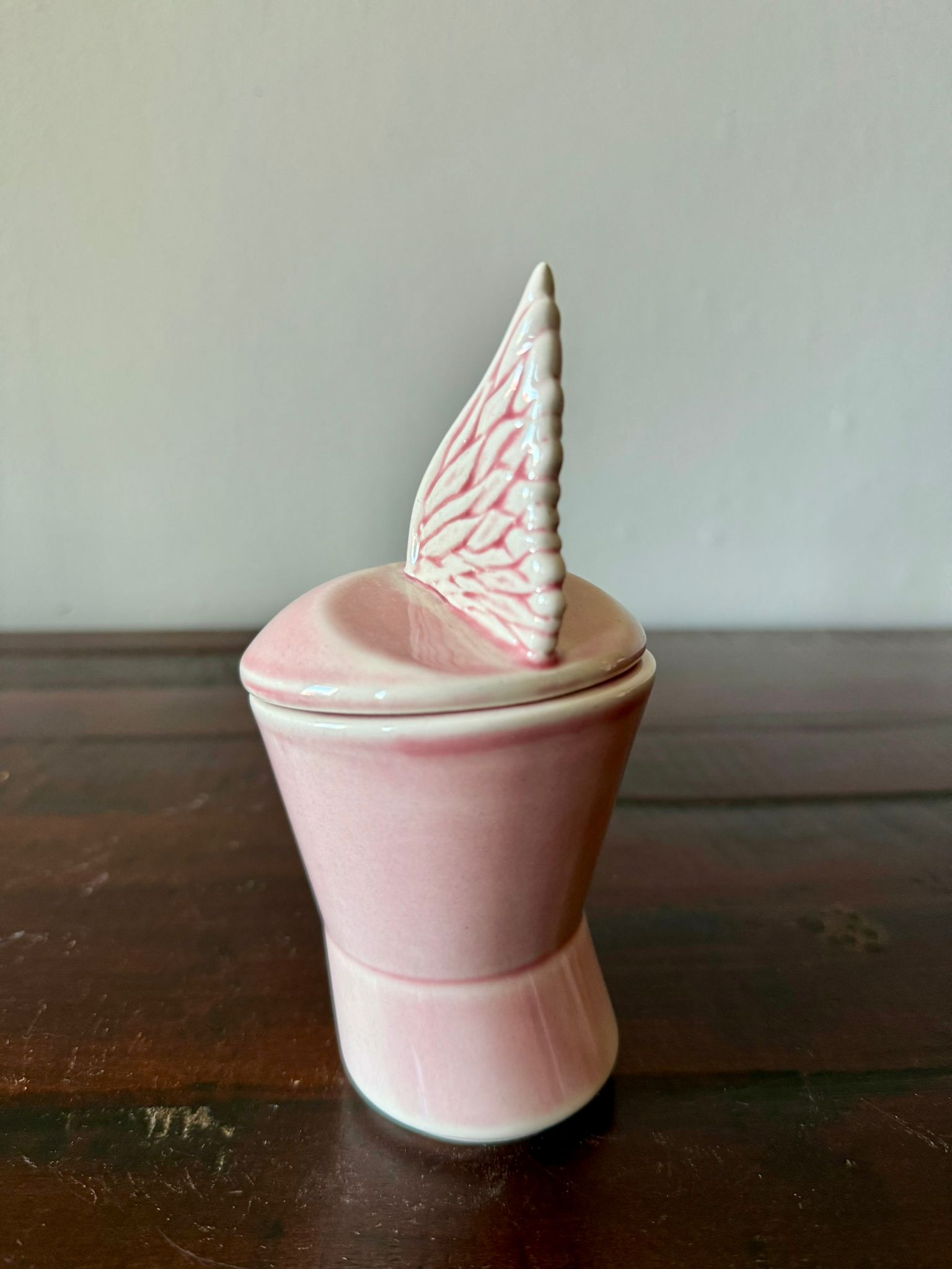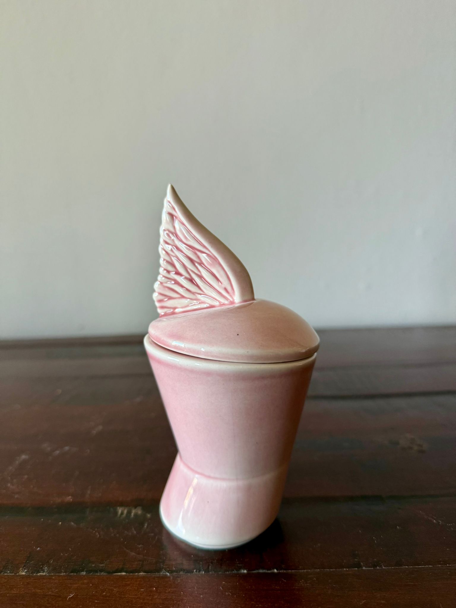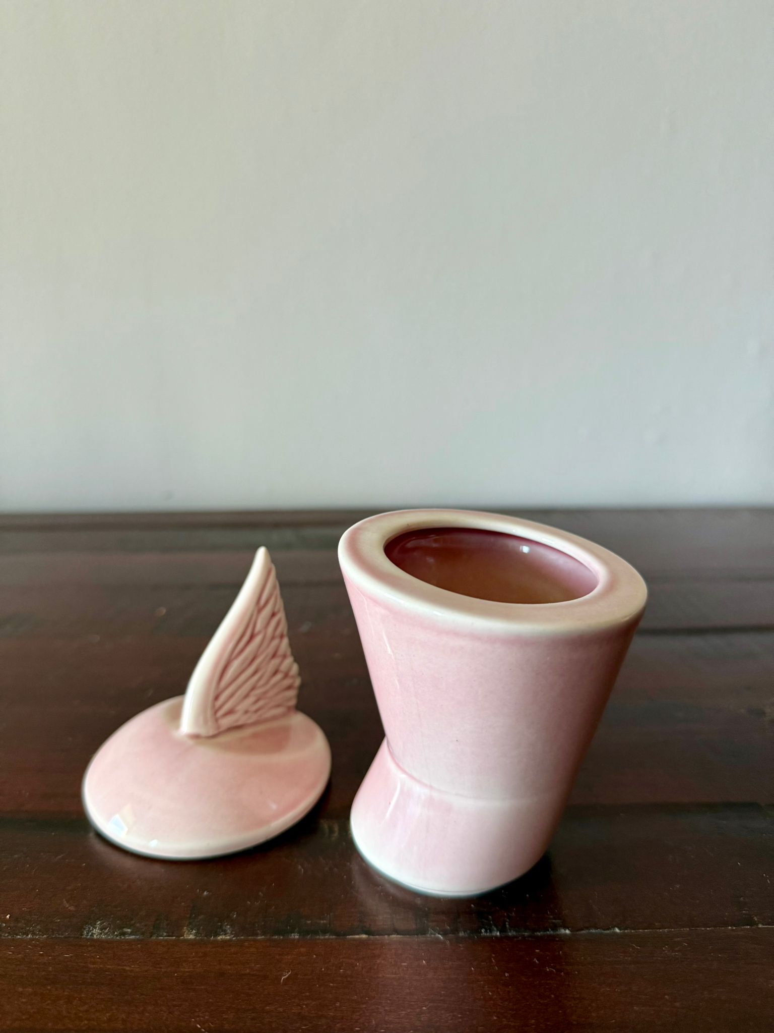 Ręcznie wykonana cukiernica z kolekcji Angel to wyjątkowy element ceramiki artystycznej, który zachwyca subtelnością i elegancją. Pokryta błyszczącym szkliwem w kolorze delikatnego różu, pięknie odbija światło, podkreślając jej miękkie linie i nowoczesną formę. Uchwyt pokrywki w kształcie skrzydła anioła dodaje jej symbolicznego charakteru i czyni z niej nie tylko praktyczny, ale i dekoracyjny przedmiot.
