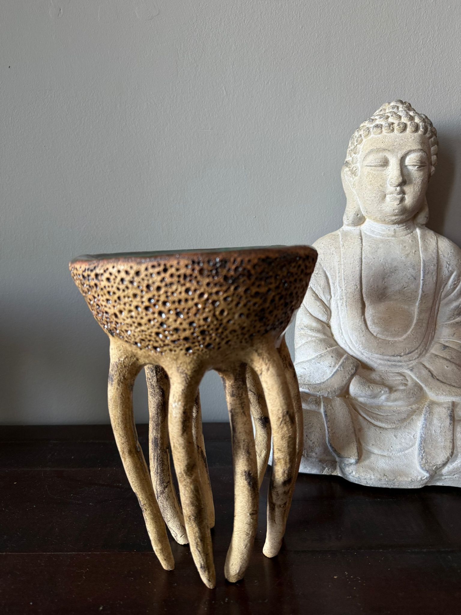 Ręcznie wykonana miska, inspirowana światem natury i nastrojem podwodnych pejzaży. To przedmiot, który łączy funkcjonalność z artystyczną ekspresją – może służyć jako dekoracja, naczynie na drobiazgi, podstawka na świece lub po prostu mała rzeźba zdobiąca przestrzeń.