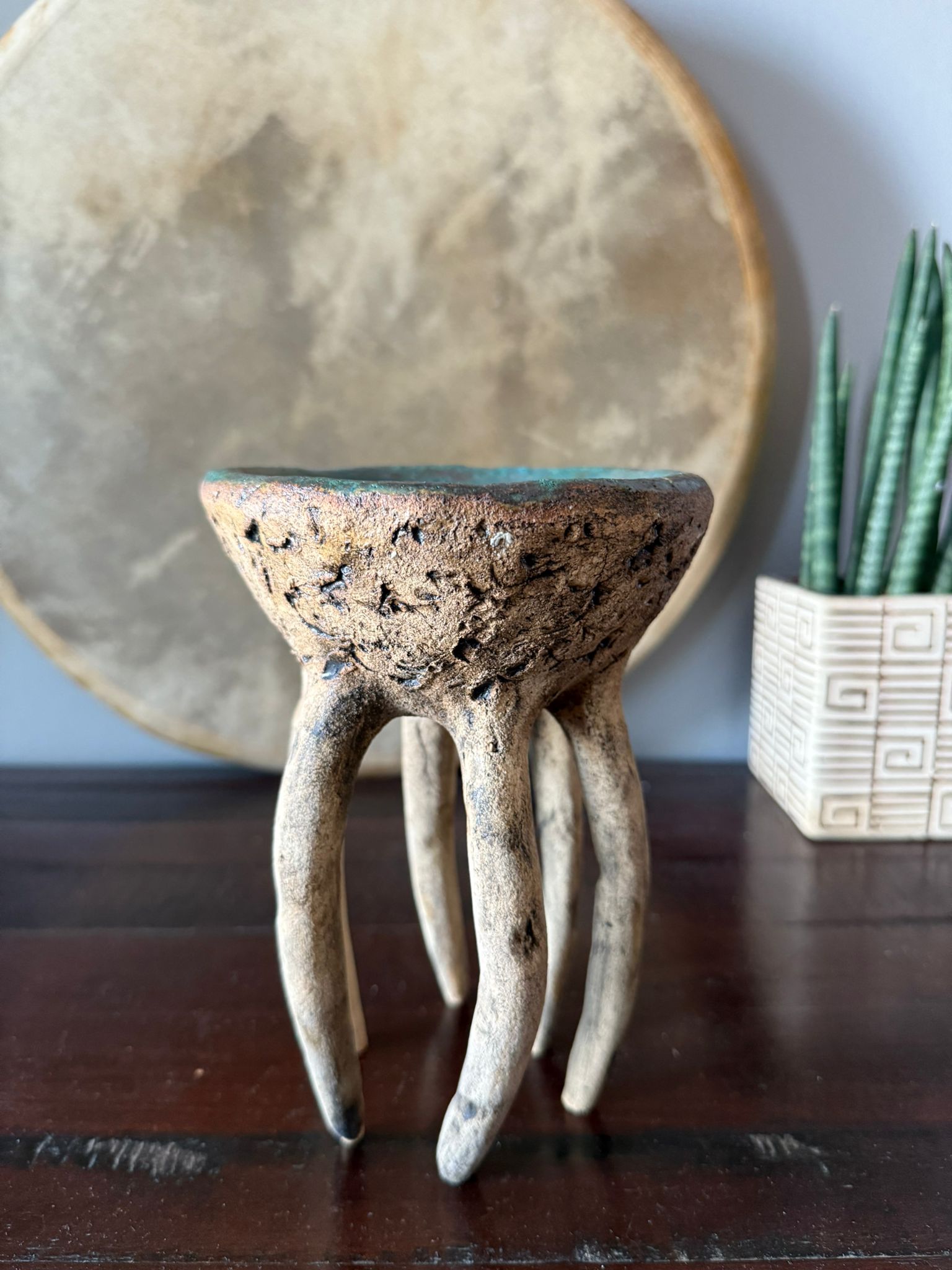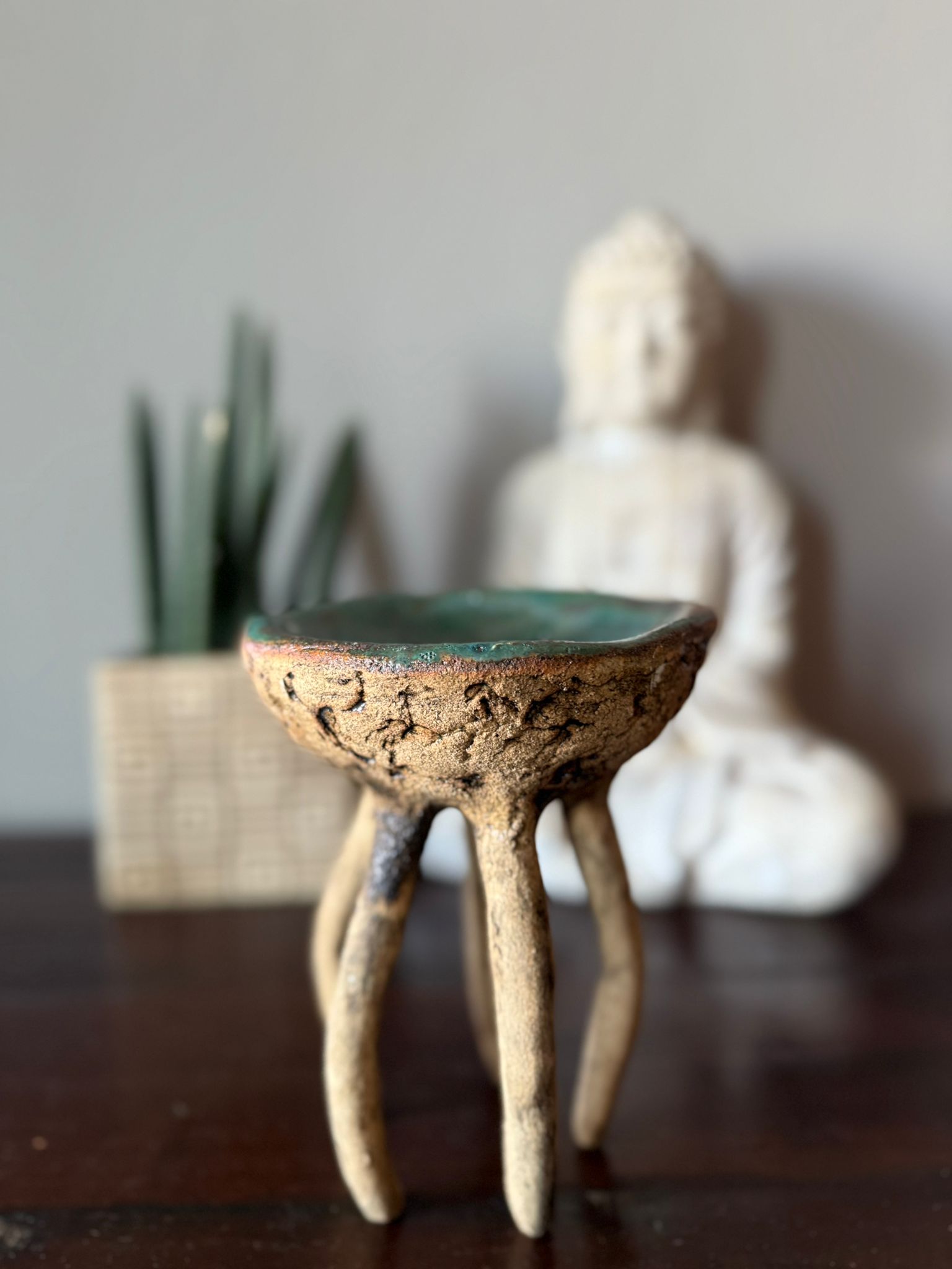 Ręcznie wykonana miska, inspirowana światem natury i nastrojem podwodnych pejzaży. To przedmiot, który łączy funkcjonalność z artystyczną ekspresją – może służyć jako dekoracja, naczynie na drobiazgi, podstawka na świece lub po prostu mała rzeźba zdobiąca przestrzeń.