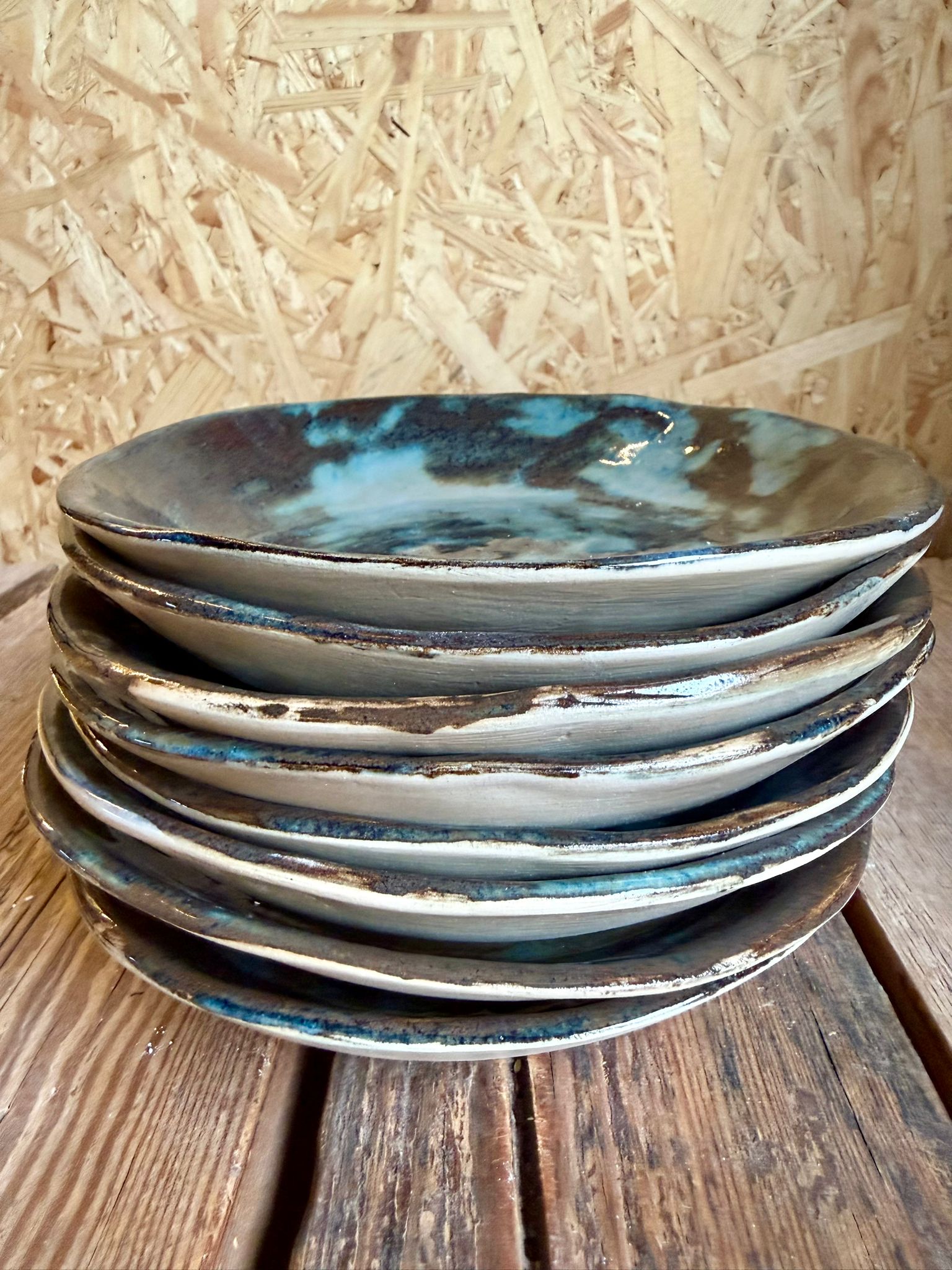 Każdy talerz powstaje ręcznie, dlatego nie ma dwóch identycznych sztuk – subtelne różnice w szkliwie, tonacji i fakturze są naturalną cechą ceramiki handmade. Razem tworzą harmonijną, estetyczną całość, idealną do kompletowania zestawu stołowego.