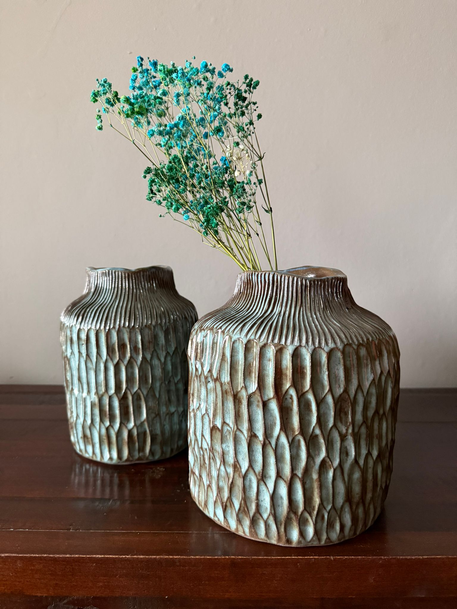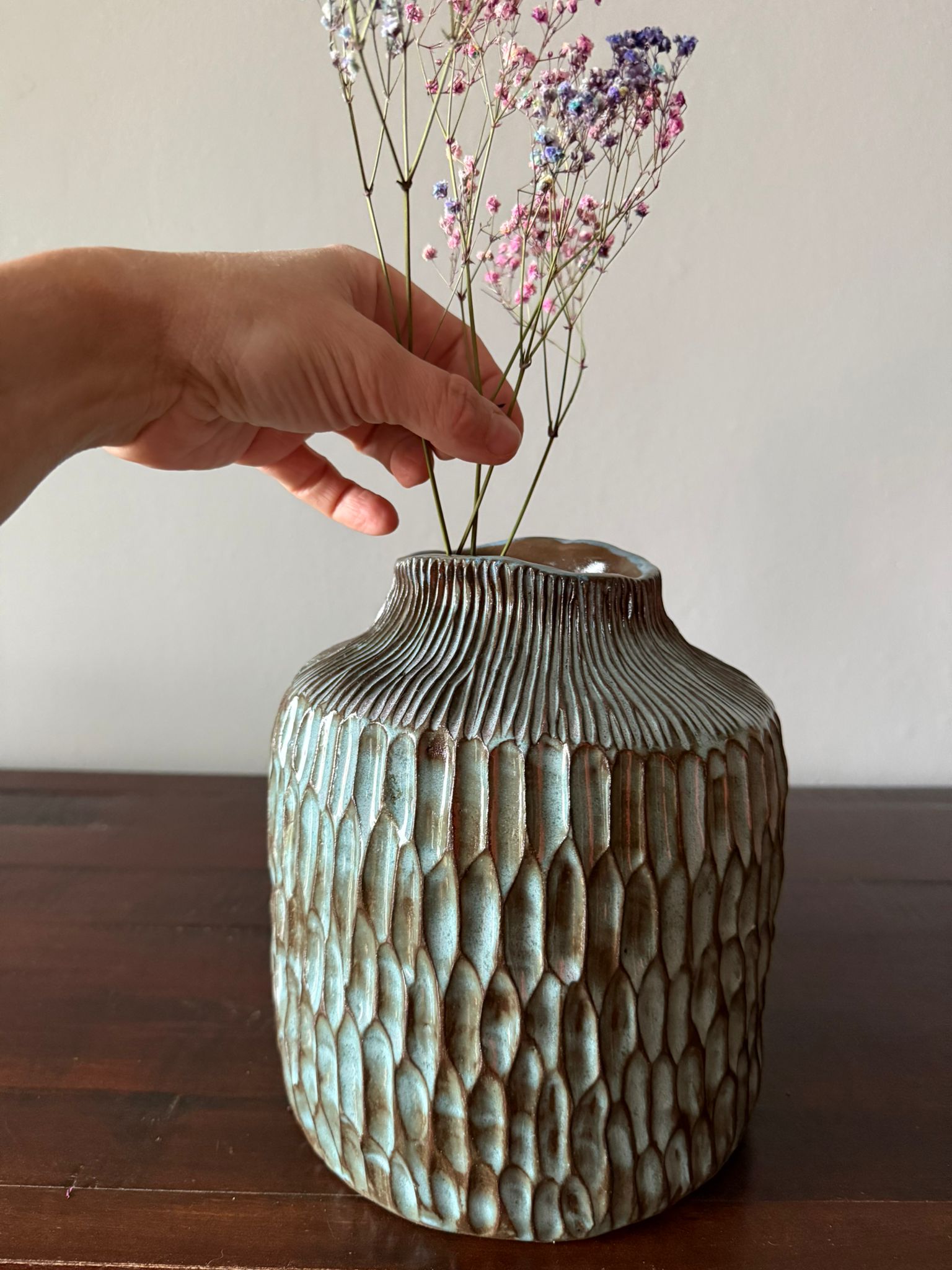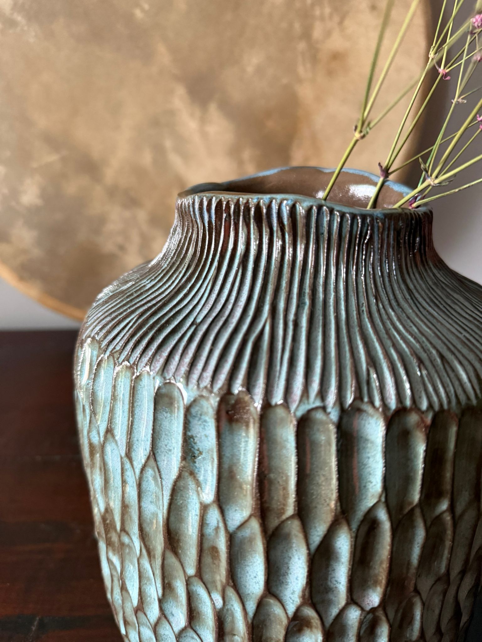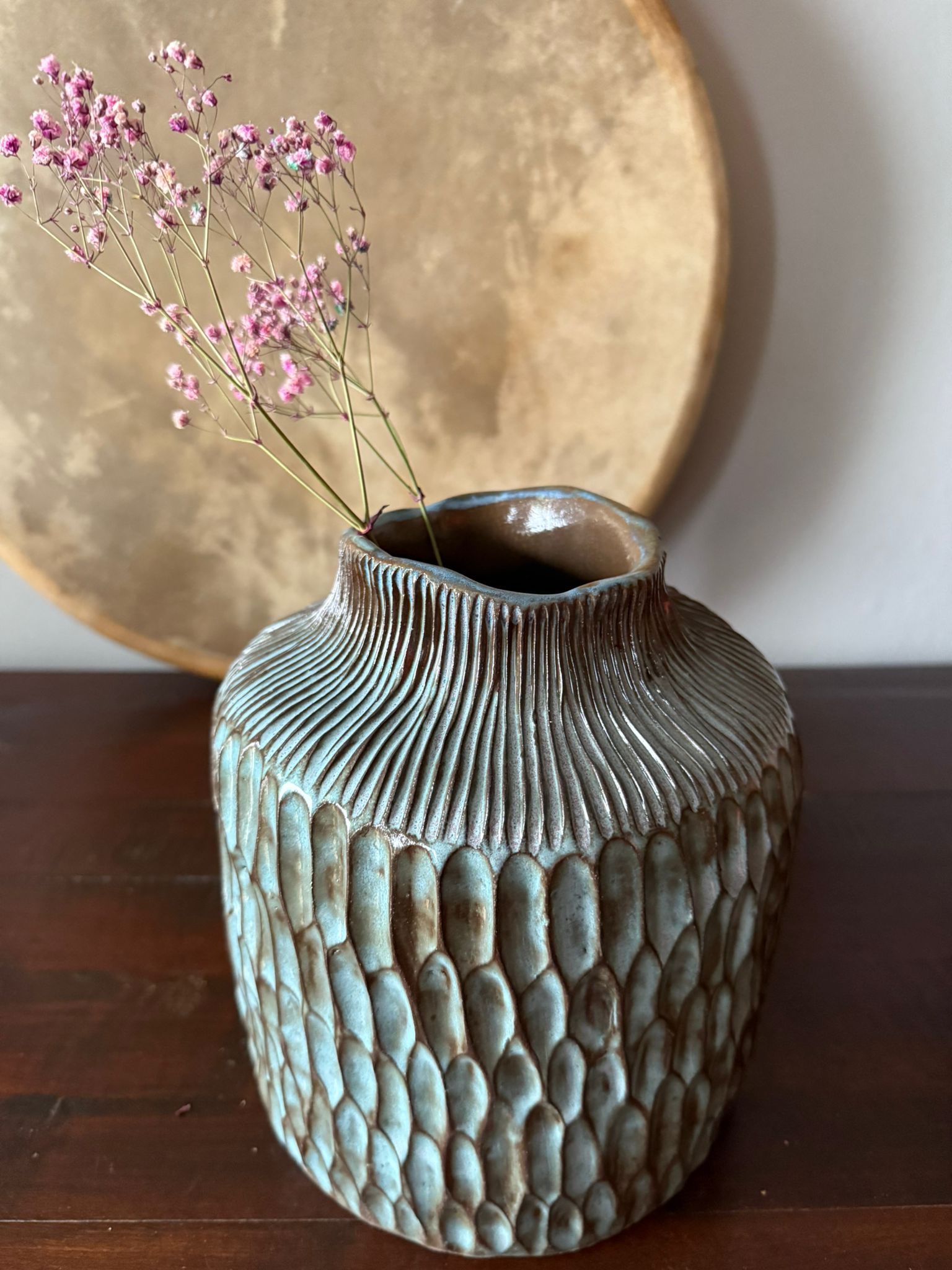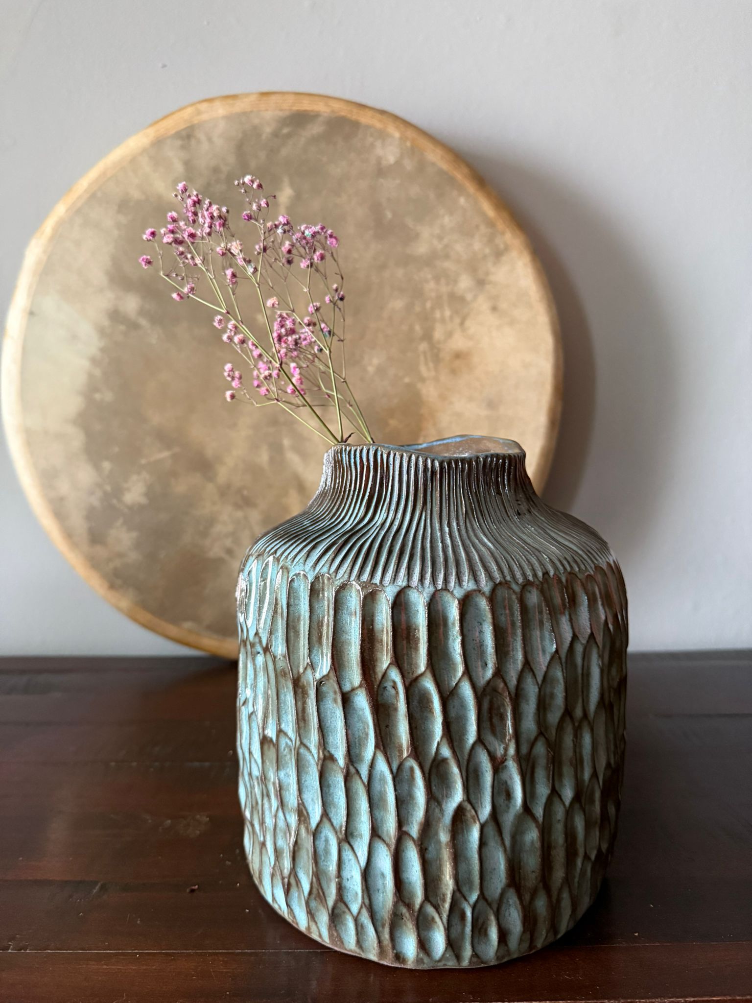 Idealny dla osób, które cenią rękodzieło, oryginalność i niepowtarzalny design. Wazon „Deep Line” to nie tylko przedmiot użytkowy, ale małe dzieło sztuki, które wnosi do wnętrza głębię i artystyczny klimat.