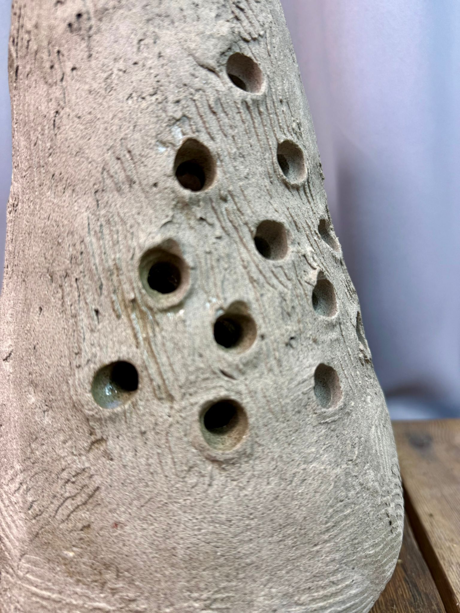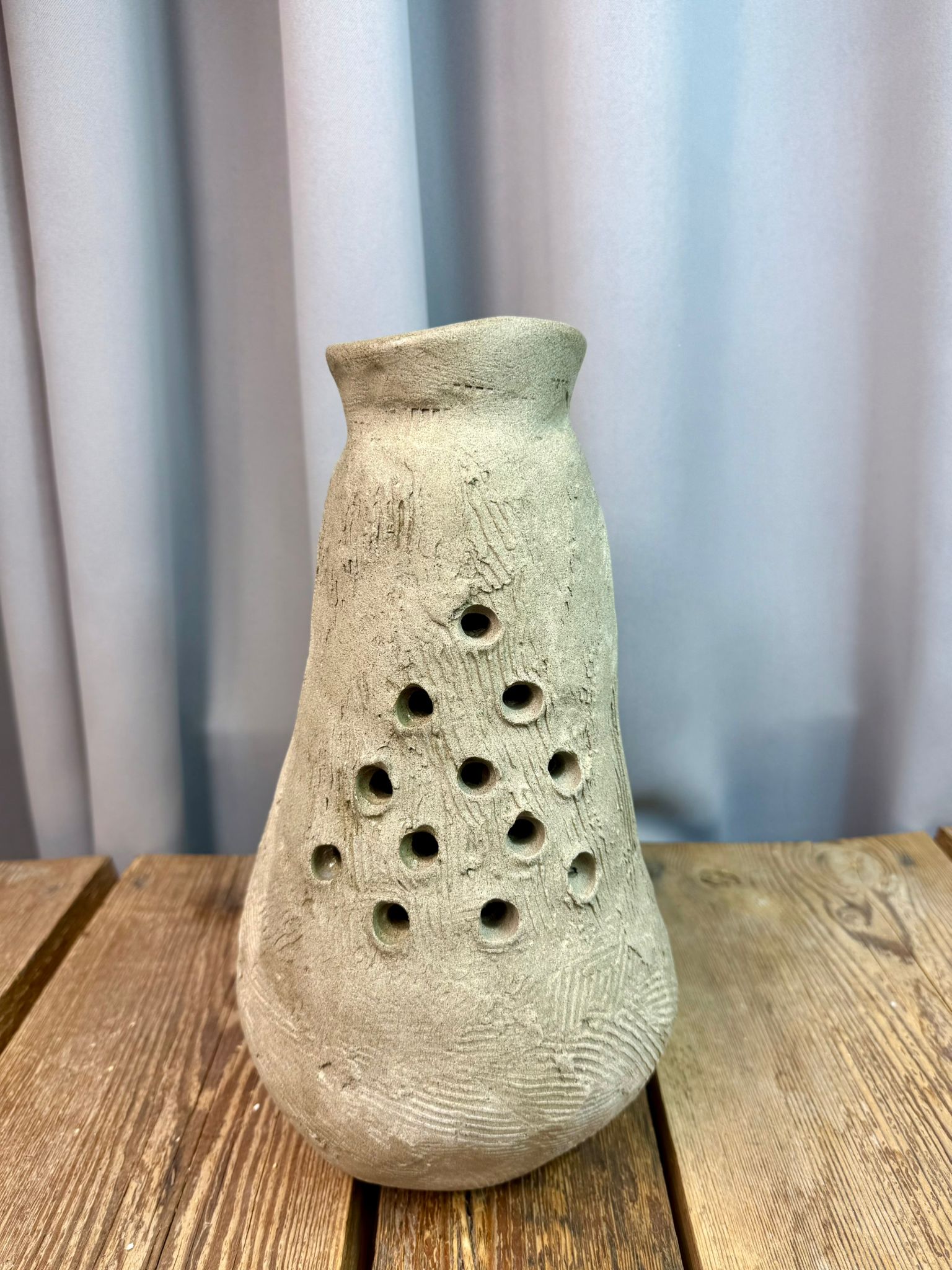 Dzięki prostej formie i unikatowej fakturze świetnie prezentuje się zarówno samodzielnie, jak i w zestawieniu z innymi wazonami stworzonymi w tej samej technice. To wyjątkowy element dekoracyjny, który wprowadzi do wnętrza harmonię i naturalny charakter.